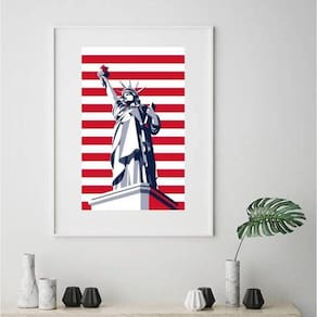 Quadro eua - estátua da liberdade listras - 60x48cm Moldura: madeira branca Informações do produto tire todas as suas dúvidas no descritivo abaixo: decoração para quarto, sala, cozinha, escritório, área gourmet e muito mais. Chega de paredes vazias medidas - cada peça tem 60x48cm . Material do papel - papel fotográfico brilhante de altíssima resolução acabamento - todos os quadros são acompanhados de vidro para proteção da imagem. - moldura em madeira maciça na cor preta ou branca conforme produto escolhido e pendurador. - paspatur branco com 7cm de largura - os quadros são embalados de forma segura com plástico bolha com camada dupla de acordo com o tamanho dos quadros. Garantia - garantia de 3 meses. Meu quadro chegou. Como posso fixá-lo Você precisa apenas de um martelo e um prego, pois os quadros já vão acompanhados de penduradores. Esta é a forma mais indicada. Como posso limpar meu quadro A limpeza é feita como um móvel comum da sua casa. Apenas um pano seco ou espanador são suficientes para tal