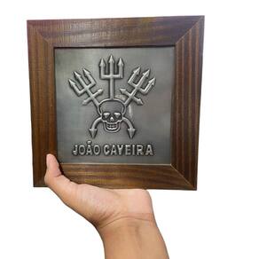 Quadro Exu Joâo Caveira Madeira Imbuia e Metal 18 x18 cm