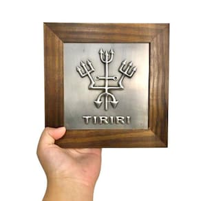 O Quadro Exu Tiriri Madeira Imbuia e Metal, combina a resistência do aço com a elegância da madeira de carvalho, resultando em uma peça de beleza única e profundo significado espiritual. Perfeito para adornar sua casa, escritório ou altar pessoal, este quadro não apenas adiciona um toque de estética, mas também emana uma aura de proteção e orientação. Deixe a presença intrigante de Exú iluminar seu ambiente, criando uma atmosfera de clareza e confiança em sua jornada espiritual.