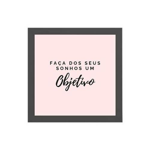 Quadro faça dos seus sonhos um objetivo 20x20cm Moldura: madeira branca Informações do produto tire todas as suas dúvidas no descritivo abaixo: decoração para quarto, sala, cozinha, escritório, área gourmet e muito mais. Chega de paredes vazias medidas - cada peça tem 20x20cm. Material do papel - papel fotográfico brilhante de altíssima resolução acabamento - todos os quadros são acompanhados de uma película de acetato para proteção da imagem. - os quadros são embalados de forma segura com plástico bolha com camada dupla de acordo com o tamanho dos quadros. - de 3 meses. Meu quadro chegou. Como posso fixá-lo Você precisa apenas de um martelo e um prego, pois os quadros já vão acompanhados de penduradores. Esta é a forma mais indicada. Caso prefira, você pode utilizar uma fita dupla face neste caso, sugerimos de alta qualidade para evitar que descole e seu quadro caia . Como posso limpar meu quadro A limpeza é feita como um móvel comum da sua casa. Apenas um pano seco ou espanador são suficientes para tal Ean: 7892090557402