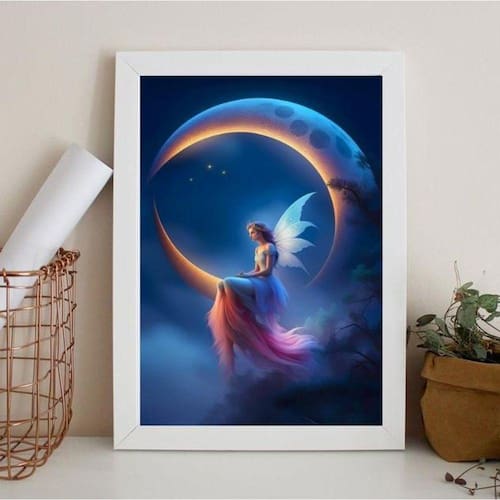 O Quadro Decorativo Fada Com Lua 24X18Cm é perfeito para decorar qualquer ambiente, seja quarto, sala, cozinha, escritório, área gourmet e muito mais. Chega de paredes vazias! Com medidas de 24x18cm A5 , esse quadro vai trazer um toque especial para a sua decoração.