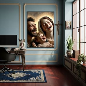 Quadro Família Santa - Jesus, Maria e José - 70x50cm - Cor: Moldura Preta