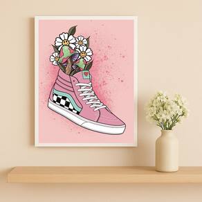Quadro Fem Fashion Tênis Flores 33x24cm Mold Branca