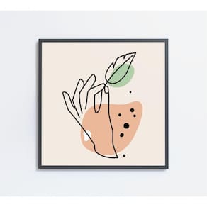 Quadro Decorativo Feminino Silhueta Mão Folha Artística Contínua Medidas 40x40 Cm Tipo De Impressão Vidro Acrílico