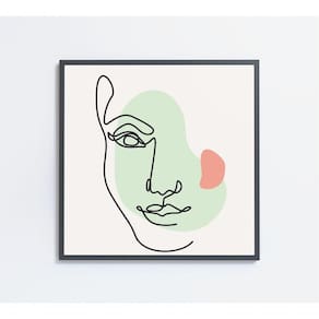Quadro Decorativo Feminino Silhueta Meia Face Artística Contínua Medidas 60x60 Cm Tipo De Impressão Adesivo Fotográfico