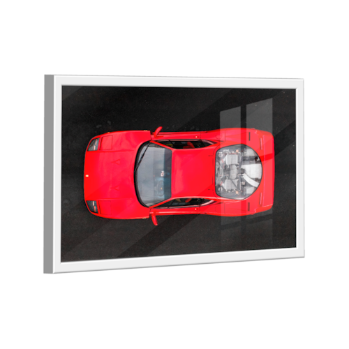 Quadro Ferrari F40 Vermelha Cima -- BR ARTES Moldura Branca e Vidro - Gigante 180x105 -