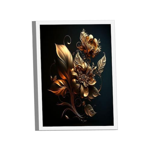 Quadro Flor Dourada 3d -- Br Artes Quadro Flor Dourada 3D -- BR ARTES Moldura Branca - Gigante 180x105 - - Qualidade Premium (padrão museu)
