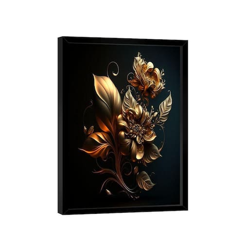 Quadro Flor Dourada 3d -- Br Artes Quadro Flor Dourada 3D -- BR ARTES Moldura Preta - Ultra Grande 150x100 - - Qualidade Premium (padrão museu)
