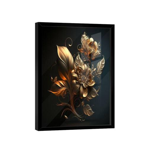 Quadro Flor Dourada 3d -- Br Artes Quadro Flor Dourada 3D -- BR ARTES Moldura Preta e Vidro - Gigante 180x105 - - Qualidade Premium (padrão museu)