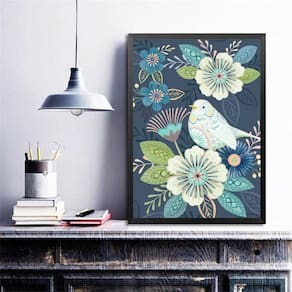 Quadro floral azul com passarinho 45x34cm Moldura: madeira preta Informações do produto tire todas as suas dúvidas no descritivo abaixo: decoração para quarto, sala, cozinha, escritório, área gourmet e muito mais. Chega de paredes vazias. Medidas - cada peça tem 45x34cm a3 . Material do papel - papel fotográfico brilhante de altíssima resolução acabamento - todos os quadros são acompanhados de uma película de acetato para proteção da imagem. - os quadros são embalados de forma segura com plástico bolha com camada dupla de acordo com o tamanho dos quadros. Garantia - garantia de 3 meses. Meu quadro chegou. Como posso fixá-lo Você precisa apenas de um martelo e um prego, pois os quadros já vão acompanhados de penduradores. Esta é a forma mais indicada. Caso prefira, você pode utilizar uma fita dupla face neste caso, sugerimos de alta qualidade para evitar que descole e seu quadro caia . Como posso limpar meu quadro A limpeza é feita como um móvel comum da sua casa. Apenas um pano seco ou espanador são suficientes para tal