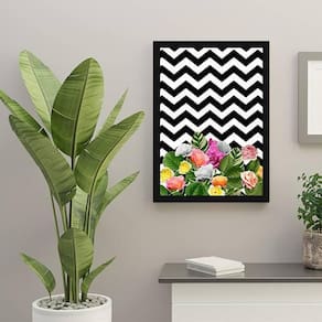 Quadro flores chevron 24x18cm - com vidro Moldura: madeira preta Informações do produto tire todas as suas dúvidas no descritivo abaixo: decoração para quarto, sala, cozinha, escritório, área gourmet e muito mais. Chega de paredes vazias medidas - cada peça tem 24x18cm a5 . Material do papel - papel fotográfico brilhante de altíssima resolução acabamento - todos os quadros são acompanhados de vidro para proteção da imagem. - moldura em madeira maciça na cor preta e pendurador . - os quadros são embalados de forma segura com plástico bolha com camada dupla de acordo com o tamanho dos quadros. - de 3 meses. Meu quadro chegou. Como posso fixá-lo Você precisa apenas de um martelo e um prego, pois os quadros já vão acompanhados de penduradores. Esta é a forma mais indicada. Como posso limpar meu quadro A limpeza é feita como um móvel comum da sua casa. Apenas um pano seco ou espanador são suficientes para tal