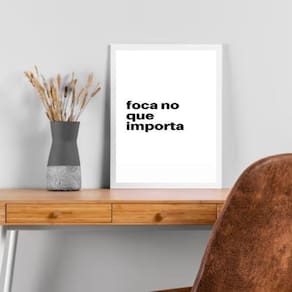 Quadro foca no que importa 45x34cm - com vidro Cor: moldura branca Informações do produto tire todas as suas dúvidas no descritivo abaixo: decoração para quarto, sala, cozinha, escritório, área gourmet e muito mais. Chega de paredes vazias medidas - cada peça tem 45x34cm a3 . Material do papel - papel fotográfico brilhante de altíssima resolução acabamento - todos os quadros são acompanhados de vidro para proteção da imagem. - moldura em madeira maciça na cor preta ou branca conforme produto escolhido e pendurador . - os quadros são embalados de forma segura com plástico bolha com camada dupla de acordo com o tamanho dos quadros. Garantia - garantia de 3 meses. Meu quadro chegou. Como posso fixá-lo Você precisa apenas de um martelo e um prego, pois os quadros já vão acompanhados de penduradores. Esta é a forma mais indicada. Como posso limpar meu quadro A limpeza é feita como um móvel comum da sua casa. Apenas um pano seco ou espanador são suficientes para tal