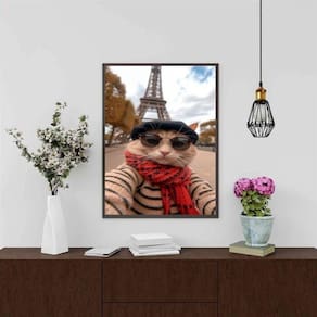 Quadro foto selfie gata em paris 24x18cm Cor: moldura preta Informações do produto tire todas as suas dúvidas no descritivo abaixo: decoração para quarto, sala, cozinha, escritório, área gourmet e muito mais. Chega de paredes vazias medidas - cada peça tem 24x18cm a5 . Material do papel - papel fotográfico brilhante de altíssima resolução acabamento - todos os quadros são acompanhados de uma película de acetato para proteção da imagem. - os quadros são embalados de forma segura com plástico bolha com camada dupla de acordo com o tamanho dos quadros. Garantia - garantia de 3 meses. Meu quadro chegou. Como posso fixá-lo Você precisa apenas de um martelo e um prego, pois os quadros já vão acompanhados de penduradores. Esta é a forma mais indicada. Caso prefira, você pode utilizar uma fita dupla face neste caso, sugerimos de alta qualidade para evitar que descole e seu quadro caia . Como posso limpar meu quadro A limpeza é feita como um móvel comum da sua casa. Apenas um pano seco ou espanador são suficientes para tal