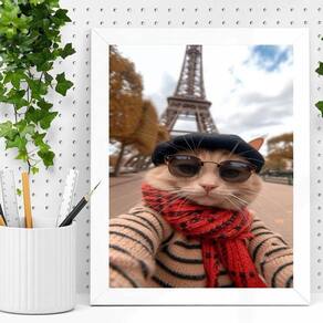 Quadro foto selfie gata em paris 45x34cm Cor: moldura preta Informações do produto tire todas as suas dúvidas no descritivo abaixo: decoração para quarto, sala, cozinha, escritório, área gourmet e muito mais. Chega de paredes vazias. Medidas - cada peça tem 45x34cm a3 . Material do papel - papel fotográfico brilhante de altíssima resolução acabamento - todos os quadros são acompanhados de uma película de acetato para proteção da imagem. - os quadros são embalados de forma segura com plástico bolha com camada dupla de acordo com o tamanho dos quadros. - de 3 meses. Meu quadro chegou. Como posso fixá-lo Você precisa apenas de um martelo e um prego, pois os quadros já vão acompanhados de penduradores. Esta é a forma mais indicada. Caso prefira, você pode utilizar uma fita dupla face neste caso, sugerimos de alta qualidade para evitar que descole e seu quadro caia . Como posso limpar meu quadro A limpeza é feita como um móvel comum da sua casa. Apenas um pano seco ou espanador são suficientes para tal Marca: Não Informado