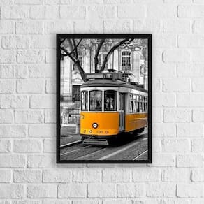 Quadro Fotografia Bonde Amarelo 45X34Cm Com Vidro Preta