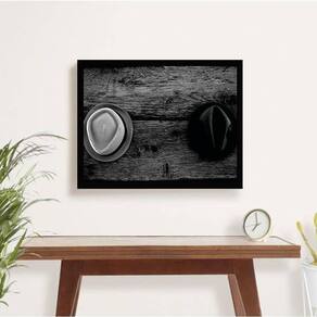 Quadro fotografia chapéus 24x18cm Moldura: madeira preta Informações do produto tire todas as suas dúvidas no descritivo abaixo: decoração para quarto, sala, cozinha, escritório, área gourmet e muito mais. Chega de paredes vazias medidas - cada peça tem 24x18cm a5 . Material do papel - papel fotográfico brilhante de altíssima resolução acabamento - todos os quadros são acompanhados de uma película de acetato para proteção da imagem. - moldura em madeira maciça na cor branca e pendurador móvel que pode ser retirado facilmente caso deseje fixar com fita dupla face. - os quadros são embalados de forma segura com plástico bolha com camada dupla de acordo com o tamanho dos quadros. - de 3 meses prazo de envio pedimos 24 horas úteis no máximo para enviar seu pedido após o envio, segue os prazos normais dos correios, cerca de 7 dias úteis exceto para norte e nordeste, que pode ser de até 14 dias úteis. Em diversas cidades, este prazo normalmente é reduzido, mas depende do prazo dos correios. Meu quadro chegou. Como posso fixá-lo Você precisa apenas de um martelo e um prego, pois os quadros já vão acompanhados de penduradores. Esta é a forma mais indicada. Caso prefira, você pode utilizar uma fita dupla face neste caso, sugerimos de alta qualidade para evitar que descole e seu quadro caia . Como posso limpar meu quadro A limpeza é feita como um móvel comum da sua casa. Apenas um pano seco ou espanador são suficientes para tal