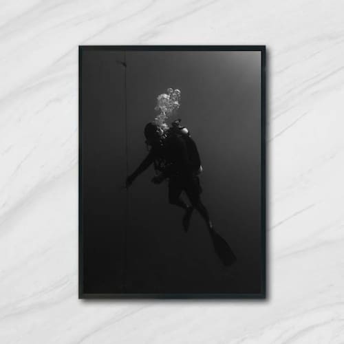 Quadro Fotografia Mergulhador 45X34 Com Vidro Moldura Preta