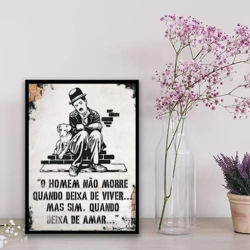 Quadro frase de amor charlie chaplin 24x18cm - com vidro Moldura: madeira preta