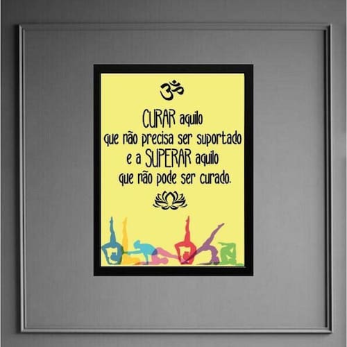Quadro frase yoga - curar e superar 33x24cm Moldura: madeira branca Informações do produto tire todas as suas dúvidas no descritivo abaixo: decoração para quarto, sala, cozinha, escritório, área gourmet e muito mais. Chega de paredes vazias medidas - cada peça tem 33x24cm a4 . Material do papel - papel fotográfico brilhante de altíssima resolução acabamento - todos os quadros são acompanhados de uma película de acetato para proteção da imagem. - os quadros são embalados de forma segura com plástico bolha com camada dupla de acordo com o tamanho dos quadros. Garantia - garantia de 3 meses. Meu quadro chegou. Como posso fixá-lo Você precisa apenas de um martelo e um prego, pois os quadros já vão acompanhados de penduradores. Esta é a forma mais indicada. Caso prefira, você pode utilizar uma fita dupla face neste caso, sugerimos de alta qualidade para evitar que descole e seu quadro caia . Como posso limpar meu quadro A limpeza é feita como um móvel comum da sua casa. Apenas um pano seco ou espanador são suficientes para tal