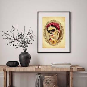 Quadro frida dia de los muertos - 60x48cm Moldura: madeira preta Informações do produto tire todas as suas dúvidas no descritivo abaixo: decoração para quarto, sala, cozinha, escritório, área gourmet e muito mais. Chega de paredes vazias medidas - cada peça tem 60x48cm . Material do papel - papel fotográfico brilhante de altíssima resolução acabamento - todos os quadros são acompanhados de vidro para proteção da imagem. - moldura em madeira maciça na cor preta ou branca conforme produto escolhido e pendurador. - paspatur branco com 7cm de largura - os quadros são embalados de forma segura com plástico bolha com camada dupla de acordo com o tamanho dos quadros. Garantia - garantia de 3 meses. Meu quadro chegou. Como posso fixá-lo Você precisa apenas de um martelo e um prego, pois os quadros já vão acompanhados de penduradores. Esta é a forma mais indicada. Como posso limpar meu quadro A limpeza é feita como um móvel comum da sua casa. Apenas um pano seco ou espanador são suficientes para tal