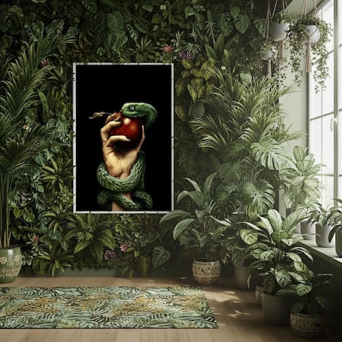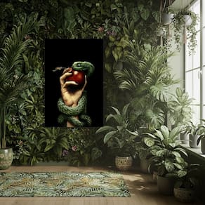 Quadro Fruto Proibido Serpente Maçã - 70x50cm - Cor: Moldura Preta