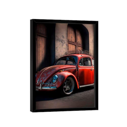 Quadro Fusca Vermelho Intenso -- BR ARTES Moldura Preta - Ultra Grande 150x100 -