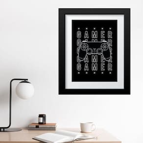 Quadro gamer controle preto e branco - 60x48cm Moldura: madeira branca Informações do produto tire todas as suas dúvidas no descritivo abaixo: decoração para quarto, sala, cozinha, escritório, área gourmet e muito mais. Chega de paredes vazias medidas - cada peça tem 60x48cm . Material do papel - papel fotográfico brilhante de altíssima resolução acabamento - todos os quadros são acompanhados de vidro para proteção da imagem. - moldura em madeira maciça na cor preta ou branca conforme produto escolhido e pendurador. - paspatur branco com 7cm de largura - os quadros são embalados de forma segura com plástico bolha com camada dupla de acordo com o tamanho dos quadros. Garantia - garantia de 3 meses. Meu quadro chegou. Como posso fixá-lo Você precisa apenas de um martelo e um prego, pois os quadros já vão acompanhados de penduradores. Esta é a forma mais indicada. Como posso limpar meu quadro A limpeza é feita como um móvel comum da sua casa. Apenas um pano seco ou espanador são suficientes para tal