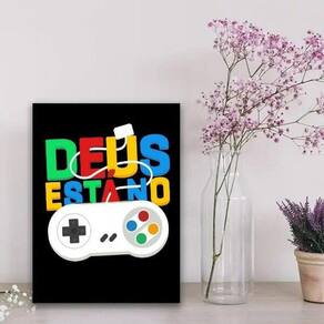 Se você é um apaixonado por games, o Quadro Gamer Deus Está No Controle é perfeito para decorar o seu quarto, sala, cozinha, escritório, área gourmet e muito mais. Chega de paredes vazias! Com medidas de 33x24cm A4 , este quadro vai deixar o seu espaço com um toque especial e personalizado.