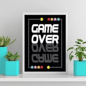 Quadro gamer game over 45x34cm Moldura: madeira branca Informações do produto tire todas as suas dúvidas no descritivo abaixo: decoração para quarto, sala, cozinha, escritório, área gourmet e muito mais. Chega de paredes vazias. Medidas - cada peça tem 45x34cm a3 . Material do papel - papel fotográfico brilhante de altíssima resolução acabamento - todos os quadros são acompanhados de uma película de acetato para proteção da imagem. - os quadros são embalados de forma segura com plástico bolha com camada dupla de acordo com o tamanho dos quadros. Você precisa apenas de um martelo e um prego, pois os quadros já vão acompanhados de penduradores. Esta é a forma mais indicada. Caso prefira, você pode utilizar uma fita dupla face neste caso, sugerimos de alta qualidade para evitar que descole e seu quadro caia . Como posso limpar meu quadro A limpeza é feita como um móvel comum da sua casa. Apenas um pano seco ou espanador são suficientes para tal Marca: Não Informado Ean: 7895145480526