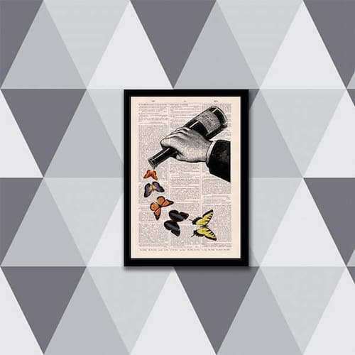 Quadro garrafa de vinho com borboletas 24x18cm Moldura: madeira preta Informações do produto tire todas as suas dúvidas no descritivo abaixo: decoração para quarto, sala, cozinha, escritório, área gourmet e muito mais. Chega de paredes vazias medidas - cada peça tem 24x18cm a5 . Material do papel - papel fotográfico brilhante de altíssima resolução acabamento - todos os quadros são acompanhados de uma película de acetato para proteção da imagem. - moldura em madeira maciça na cor branca e pendurador móvel que pode ser retirado facilmente caso deseje fixar com fita dupla face. - os quadros são embalados de forma segura com plástico bolha com camada dupla de acordo com o tamanho dos quadros. - de 3 meses prazo de envio pedimos 24 horas úteis no máximo para enviar seu pedido após o envio, segue os prazos normais dos correios, cerca de 7 dias úteis exceto para norte e nordeste, que pode ser de até 14 dias úteis. Em diversas cidades, este prazo normalmente é reduzido, mas depende do prazo dos correios. Meu quadro chegou. Como posso fixá-lo Você precisa apenas de um martelo e um prego, pois os quadros já vão acompanhados de penduradores. Esta é a forma mais indicada. Caso prefira, você pode utilizar uma fita dupla face neste caso, sugerimos de alta qualidade para evitar que descole e seu quadro caia . Como posso limpar meu quadro A limpeza é feita como um móvel comum da sua casa. Apenas um pano seco ou espanador são suficientes para tal Ean: 7892090488560