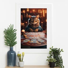 Quadro gatinha cartomante - 60x48cm Cor: moldura branca Informações do produto tire todas as suas dúvidas no descritivo abaixo: decoração para quarto, sala, cozinha, escritório, área gourmet e muito mais. Chega de paredes vazias medidas - cada peça tem 60x48cm . Material do papel - papel fotográfico brilhante de altíssima resolução acabamento - todos os quadros são acompanhados de vidro para proteção da imagem. - moldura em madeira maciça na cor preta ou branca conforme produto escolhido e pendurador. - paspatur branco com 7cm de largura - os quadros são embalados de forma segura com plástico bolha com camada dupla de acordo com o tamanho dos quadros. Garantia - garantia de 3 meses. Meu quadro chegou. Como posso fixá-lo Você precisa apenas de um martelo e um prego, pois os quadros já vão acompanhados de penduradores. Esta é a forma mais indicada. Como posso limpar meu quadro A limpeza é feita como um móvel comum da sua casa. Apenas um pano seco ou espanador são suficientes para tal Ean: 7891234544247