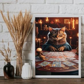 Quadro gatinha taróloga - cartomante 33x24cm Cor: moldura preta Informações do produto tire todas as suas dúvidas no descritivo abaixo: decoração para quarto, sala, cozinha, escritório, área gourmet e muito mais. Chega de paredes vazias medidas - cada peça tem 33x24cm a4 . Material do papel - papel fotográfico brilhante de altíssima resolução acabamento - todos os quadros são acompanhados de uma película de acetato para proteção da imagem. - os quadros são embalados de forma segura com plástico bolha com camada dupla de acordo com o tamanho dos quadros. Garantia - garantia de 3 meses. Meu quadro chegou. Como posso fixá-lo Você precisa apenas de um martelo e um prego, pois os quadros já vão acompanhados de penduradores. Esta é a forma mais indicada. Caso prefira, você pode utilizar uma fita dupla face neste caso, sugerimos de alta qualidade para evitar que descole e seu quadro caia . Como posso limpar meu quadro A limpeza é feita como um móvel comum da sua casa. Apenas um pano seco ou espanador são suficientes para tal Ean: 7891234548030