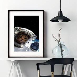 Quadro gatinho astronauta - 60x48cm Moldura: madeira branca Informações do produto tire todas as suas dúvidas no descritivo abaixo: decoração para quarto, sala, cozinha, escritório, área gourmet e muito mais. Chega de paredes vazias medidas - cada peça tem 60x48cm . Material do papel - papel fotográfico brilhante de altíssima resolução acabamento - todos os quadros são acompanhados de vidro para proteção da imagem. - moldura em madeira maciça na cor preta ou branca conforme produto escolhido e pendurador. - paspatur branco com 7cm de largura - os quadros são embalados de forma segura com plástico bolha com camada dupla de acordo com o tamanho dos quadros. Garantia - garantia de 3 meses. Meu quadro chegou. Como posso fixá-lo Você precisa apenas de um martelo e um prego, pois os quadros já vão acompanhados de penduradores. Esta é a forma mais indicada. Como posso limpar meu quadro A limpeza é feita como um móvel comum da sua casa. Apenas um pano seco ou espanador são suficientes para tal