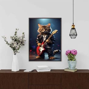 Quadro gatinho roqueiro - guitarra 33x24cm Cor: moldura preta Informações do produto tire todas as suas dúvidas no descritivo abaixo: decoração para quarto, sala, cozinha, escritório, área gourmet e muito mais. Chega de paredes vazias medidas - cada peça tem 33x24cm a4 . Material do papel - papel fotográfico brilhante de altíssima resolução acabamento - todos os quadros são acompanhados de uma película de acetato para proteção da imagem. - os quadros são embalados de forma segura com plástico bolha com camada dupla de acordo com o tamanho dos quadros. - de 3 meses. Meu quadro chegou. Como posso fixá-lo Você precisa apenas de um martelo e um prego, pois os quadros já vão acompanhados de penduradores. Esta é a forma mais indicada. Caso prefira, você pode utilizar uma fita dupla face neste caso, sugerimos de alta qualidade para evitar que descole e seu quadro caia . Como posso limpar meu quadro A limpeza é feita como um móvel comum da sua casa. Apenas um pano seco ou espanador são suficientes para tal Ean: 7891234546593