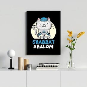 Adicione estilo e personalidade aos seus ambientes com o encantador Quadro Decorativo Gatinho Shabbat Shalom 45X34Cm. Ean: 7899772769344