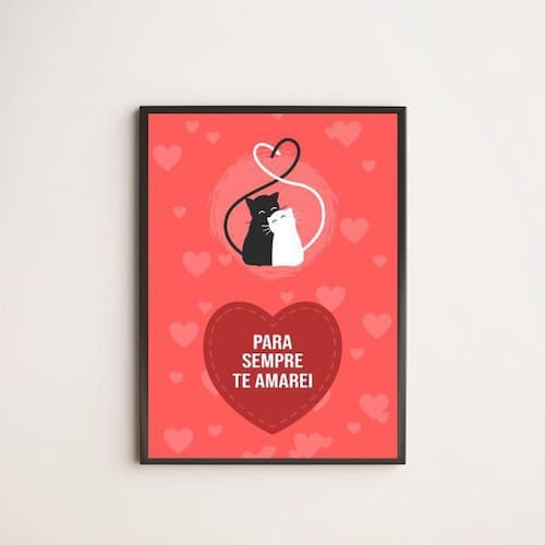 Quadro gatinhos para sempre te amarei 24x18cm Moldura: madeira preta Informações do produto tire todas as suas dúvidas no descritivo abaixo: decoração para quarto, sala, cozinha, escritório, área gourmet e muito mais. Chega de paredes vazias medidas - cada peça tem 24x18cm a5 . Material do papel - papel fotográfico brilhante de altíssima resolução acabamento - todos os quadros são acompanhados de uma película de acetato para proteção da imagem. - moldura em madeira maciça na cor branca e pendurador móvel que pode ser retirado facilmente caso deseje fixar com fita dupla face. - os quadros são embalados de forma segura com plástico bolha com camada dupla de acordo com o tamanho dos quadros. - de 3 meses prazo de envio pedimos 24 horas úteis no máximo para enviar seu pedido após o envio, segue os prazos normais dos correios, cerca de 7 exceto para norte e nordeste, que pode ser de até 14 . Em diversas cidades, este prazo normalmente é reduzido, mas depende do prazo dos correios. Meu quadro chegou. Como posso fixá-lo Você precisa apenas de um martelo e um prego, pois os quadros já vão acompanhados de penduradores. Esta é a forma mais indicada. Caso prefira, você pode utilizar uma fita dupla face neste caso, sugerimos de alta qualidade para evitar que descole e seu quadro caia . Como posso limpar meu quadro A limpeza é feita como um móvel comum da sua casa. Apenas um pano seco ou espanador são suficientes para tal Marca: Não Informado