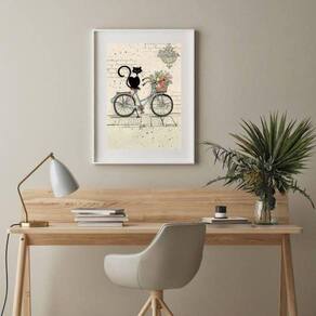 Quadro gato bicicleta flores - 60x48cm Moldura: madeira preta Informações do produto tire todas as suas dúvidas no descritivo abaixo: decoração para quarto, sala, cozinha, escritório, área gourmet e muito mais. Chega de paredes vazias medidas - cada peça tem 60x48cm . Material do papel - papel fotográfico brilhante de altíssima resolução acabamento - todos os quadros são acompanhados de vidro para proteção da imagem. - moldura em madeira maciça na cor preta ou branca conforme produto escolhido e pendurador. - paspatur branco com 7cm de largura - os quadros são embalados de forma segura com plástico bolha com camada dupla de acordo com o tamanho dos quadros. Garantia - garantia de 3 meses. Meu quadro chegou. Como posso fixá-lo Você precisa apenas de um martelo e um prego, pois os quadros já vão acompanhados de penduradores. Esta é a forma mais indicada. Como posso limpar meu quadro A limpeza é feita como um móvel comum da sua casa. Apenas um pano seco ou espanador são suficientes para tal