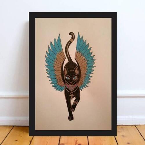 Quadro gato egípcio bastet 33x24cm - com vidro Moldura: madeira preta Informações do produto tire todas as suas dúvidas no descritivo abaixo: decoração para quarto, sala, cozinha, escritório, área gourmet e muito mais. Chega de paredes vazias medidas - cada peça tem 33x24cm a4 . Material do papel - papel fotográfico brilhante de altíssima resolução acabamento - todos os quadros são acompanhados de vidro para proteção da imagem. - moldura em madeira maciça na cor preta e pendurador . - os quadros são embalados de forma segura com plástico bolha com camada dupla de acordo com o tamanho dos quadros. Garantia - garantia de 3 meses. Meu quadro chegou. Como posso fixá-lo Você precisa apenas de um martelo e um prego, pois os quadros já vão acompanhados de penduradores. Esta é a forma mais indicada. Como posso limpar meu quadro A limpeza é feita como um móvel comum da sua casa. Apenas um pano seco ou espanador são suficientes para tal Ean: 7895142252447