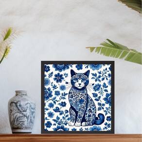 Quadro gato estilo azulejo português - 33x33cm Cor: moldura preta Informações do produto tire todas as suas dúvidas no descritivo abaixo: decoração para quarto, sala, cozinha, escritório, área gourmet e muito mais. Chega de paredes vazias medidas - cada peça tem 33x33cm. Material do papel - papel fotográfico brilhante de altíssima resolução acabamento - todos os quadros são acompanhados de uma película de acetato para proteção da imagem. - os quadros são embalados de forma segura com plástico bolha com camada dupla de acordo com o tamanho dos quadros. - de 3 meses. Meu quadro chegou. Como posso fixá-lo Você precisa apenas de um martelo e um prego, pois os quadros já vão acompanhados de penduradores. Esta é a forma mais indicada. Caso prefira, você pode utilizar uma fita dupla face neste caso, sugerimos de alta qualidade para evitar que descole e seu quadro caia . Como posso limpar meu quadro A limpeza é feita como um móvel comum da sua casa. Apenas um pano seco ou espanador são suficientes para tal