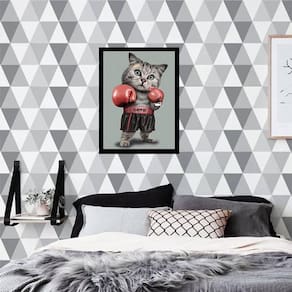 Quadro Gato Lutador De Boxe 24X18Cm Moldura: madeira branca Informações do produto Decoração para quarto, sala, cozinha, escritório, área gourmet e muito mais. Chega de paredes vazias. Medidas - cada peça tem 24x18cm a5 . Material do papel - papel fotográfico brilhante de altíssima resolução Acabamento - todos os quadros são acompanhados de uma película de acetato para proteção da imagem. - moldura em madeira maciça na cor branca e pendurador móvel que pode ser retirado facilmente caso deseje fixar com fita dupla face. - os quadros são embalados de forma segura com plástico bolha com camada dupla de acordo com o tamanho dos quadros. - de 3 meses Meu quadro chegou. Como posso fixá-lo: Você precisa apenas de um martelo e um prego, pois os quadros já vão acompanhados de penduradores. Esta é a forma mais indicada. Caso prefira, você pode utilizar uma fita dupla face neste caso, sugerimos de alta qualidade para evitar que descole e seu quadro caia . Como posso limpar meu quadro: A limpeza é feita como um móvel comum da sua casa. Apenas um pano seco ou espanador são suficientes para tal Ean: 7892090486474