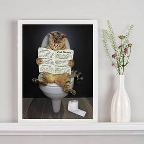 Quadro gato no banheiro lendo jornal 45x34cm Moldura: madeira branca Informações do produto tire todas as suas dúvidas no descritivo abaixo: decoração para quarto, sala, cozinha, escritório, área gourmet e muito mais. Chega de paredes vazias. Medidas - cada peça tem 45x34cm a3 . Material do papel - papel fotográfico brilhante de altíssima resolução acabamento - todos os quadros são acompanhados de uma película de acetato para proteção da imagem. - os quadros são embalados de forma segura com plástico bolha com camada dupla de acordo com o tamanho dos quadros. Garantia - garantia de 3 meses. Meu quadro chegou. Como posso fixá-lo Você precisa apenas de um martelo e um prego, pois os quadros já vão acompanhados de penduradores. Esta é a forma mais indicada. Caso prefira, você pode utilizar uma fita dupla face neste caso, sugerimos de alta qualidade para evitar que descole e seu quadro caia . Como posso limpar meu quadro A limpeza é feita como um móvel comum da sua casa. Apenas um pano seco ou espanador são suficientes para tal Ean: 7890393894095