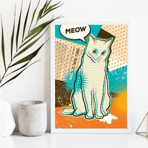 O Quadro Decorativo Arte Gato Pop Art 33X24Cm - Com Vidro é perfeito para adicionar personalidade e estilo à decoração do seu ambiente. Com medidas de 33x24cm A4 , é ideal para quartos, salas, cozinhas, escritórios, áreas gourmet e muito mais.