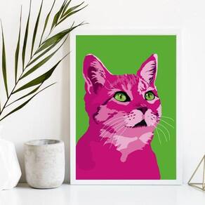 Feito com moldura de madeira preta, o Quadro Decorativo Gato Rosa Pop Art 45X34Cm possui medidas de 45x34cm A3 , e é produzido com papel fotográfico brilhante de altíssima resolução, garantindo uma imagem nítida e de qualidade. Além disso, cada quadro é acompanhado de uma película de acetato para proteção da imagem.