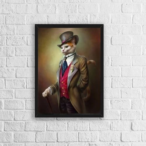 Quadro gato vestido de gente 45x34cm Moldura: madeira preta Informações do produto Decoração para quarto, sala, cozinha, escritório, área gourmet e muito mais. Chega de paredes vazias Medidas - cada peça tem 45x34cm a3 . Material do papel - papel fotográfico brilhante de altíssima resolução Acabamento - todos os quadros são acompanhados de uma película de acetato para proteção da imagem. - os quadros são embalados de forma segura com plástico bolha com camada dupla de acordo com o tamanho dos quadros. - de 3 meses. Meu quadro chegou. Como posso fixá-lo Você precisa apenas de um martelo e um prego, pois os quadros já vão acompanhados de penduradores. Esta é a forma mais indicada. Caso prefira, você pode utilizar uma fita dupla face neste caso, sugerimos de alta qualidade para evitar que descole e seu quadro caia . Como posso limpar meu quadro A limpeza é feita como um móvel comum da sua casa. Apenas um pano seco ou espanador são suficientes para tal Ean: 7891438407829