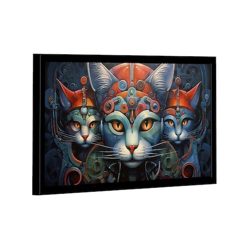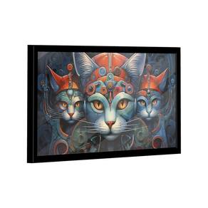 Quadro Gatos Futurista -- BR ARTES Moldura Preta - Ultra Grande 150x100 -