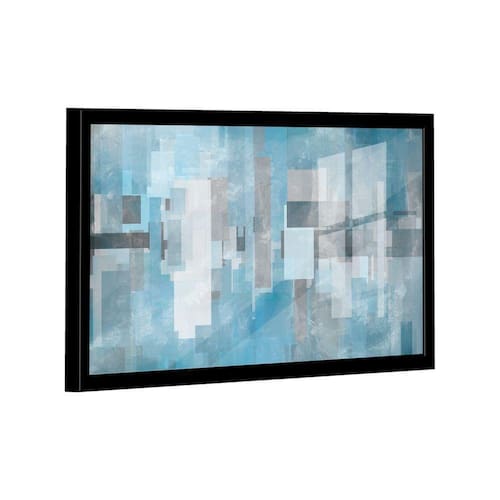 Quadro Geométrico Abstrato Azul -- Br Artes Quadro Geométrico Abstrato Azul -- BR ARTES Moldura Preta e Vidro - Gigante 180x105 - - Qualidade Premium (padrão museu)