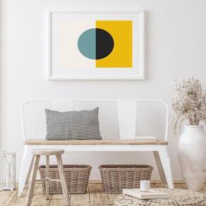 Quadro geométrico bola amarelo e azul - 60x48cm Moldura: madeira preta Informações do produto tire todas as suas dúvidas no descritivo abaixo: decoração para quarto, sala, cozinha, escritório, área gourmet e muito mais. Chega de paredes vazias medidas - cada peça tem 60x48cm . Material do papel - papel fotográfico brilhante de altíssima resolução acabamento - todos os quadros são acompanhados de vidro para proteção da imagem. - moldura em madeira maciça na cor preta ou branca conforme produto escolhido e pendurador. - paspatur branco com 7cm de largura - os quadros são embalados de forma segura com plástico bolha com camada dupla de acordo com o tamanho dos quadros. Garantia - garantia de 3 meses. Meu quadro chegou. Como posso fixá-lo Você precisa apenas de um martelo e um prego, pois os quadros já vão acompanhados de penduradores. Esta é a forma mais indicada. Como posso limpar meu quadro A limpeza é feita como um móvel comum da sua casa. Apenas um pano seco ou espanador são suficientes para tal