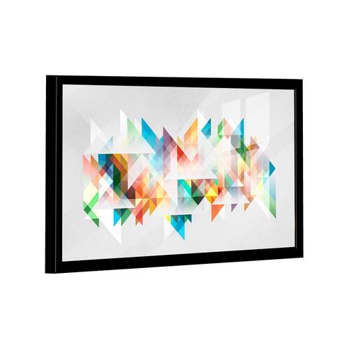 Quadro Geométrico Multicolorido -- BR ARTES Moldura Preta e Vidro - Gigante 180x105 -