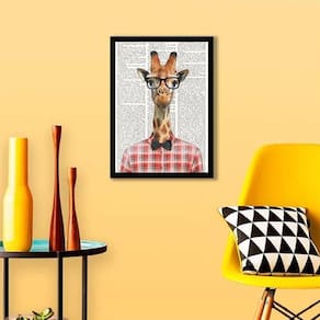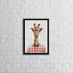 Quadro girafa intelectual 24x18cm - com vidro Moldura: madeira preta Informações do produto Decoração para quarto, sala, cozinha, escritório, área gourmet e muito mais. Chega de paredes vazias medidas - cada peça tem 24x18cm a5 . Material do papel - papel fotográfico brilhante de altíssima resolução Acabamento - todos os quadros são acompanhados de vidro para proteção da imagem. - Moldura em madeira maciça na cor preta e pendurador . - Os quadros são embalados de forma segura com plástico bolha com camada dupla de acordo com o tamanho dos quadros. - de 3 meses. Meu quadro chegou. Como posso fixá-lo Você precisa apenas de um martelo e um prego, pois os quadros já vão acompanhados de penduradores. Esta é a forma mais indicada. Como posso limpar meu quadro A limpeza é feita como um móvel comum da sua casa. Apenas um pano seco ou espanador são suficientes para tal