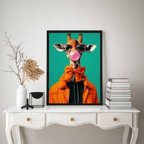 Quadro girafa moderna fashion colorida 33x24cm - com vidro Cor: moldura preta Informações do produto tire todas as suas dúvidas no descritivo abaixo: decoração para quarto, sala, cozinha, escritório, área gourmet e muito mais. Chega de paredes vazias medidas - cada peça tem 33x24cm a4 . Material do papel - papel fotográfico brilhante de altíssima resolução acabamento - todos os quadros são acompanhados de vidro para proteção da imagem. - moldura em madeira maciça na cor preta ou branca conforme produto escolhido e pendurador . - os quadros são embalados de forma segura com plástico bolha com camada dupla de acordo com o tamanho dos quadros. - de 3 meses. Meu quadro chegou. Como posso fixá-lo Você precisa apenas de um martelo e um prego, pois os quadros já vão acompanhados de penduradores. Esta é a forma mais indicada. Como posso limpar meu quadro A limpeza é feita como um móvel comum da sua casa. Apenas um pano seco ou espanador são suficientes para tal Marca: Não Informado Ean: 7901039743568